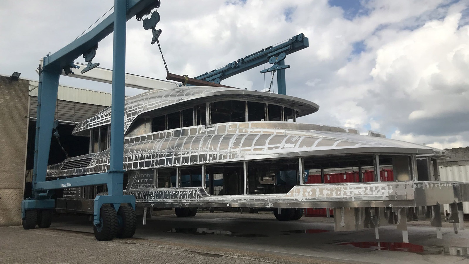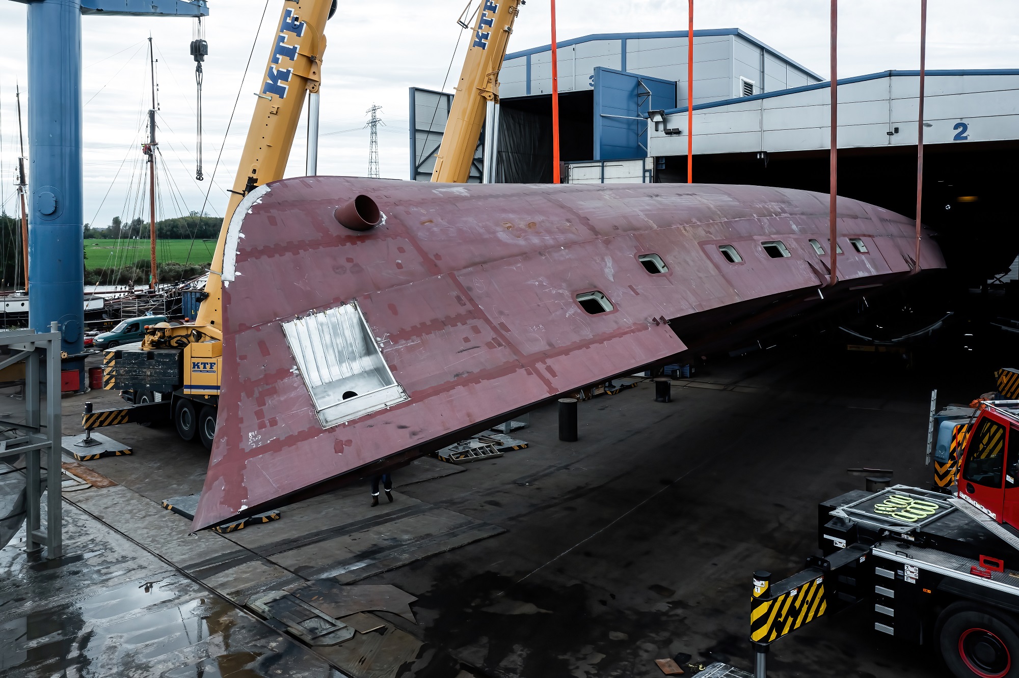 The hull of luxury yacht YN205 from Moonen Yachts’ Martinique 122 range has been turned