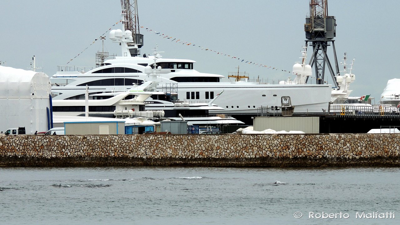 A video and photos of the new 63m FB265 super yacht ROMANTIC by Benetti. The beautiful four-deck vessel is currently dry-docked at the Benetti shipyard in Livorno, Italy. ... read full story