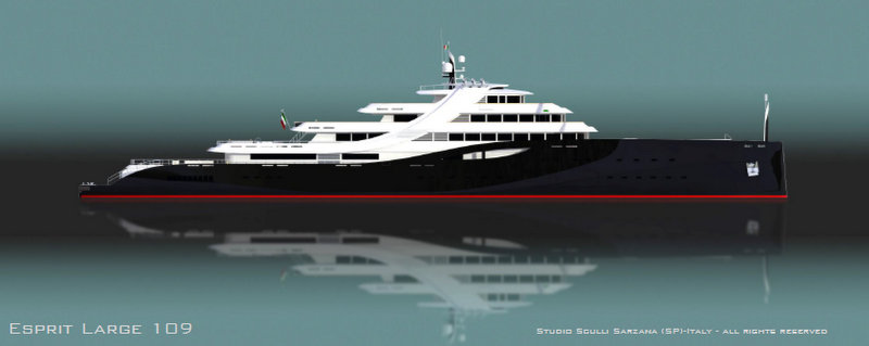 Latest renderings of the 109m super yacht Esprit Large 109 concept, superbly penned by Studio Sculli from Italy. ... read full story