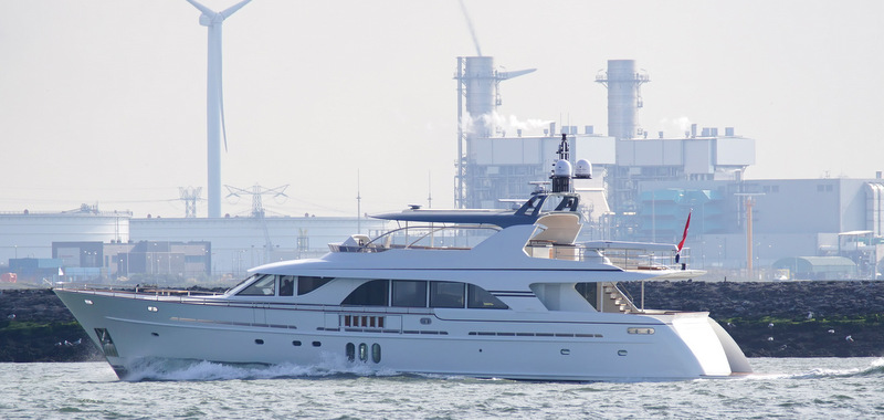 Photos showing the brand new Mulder 98 Flybridge yacht YN 1391 on the New Waterway near Hoek van Holland, when coming back from her sea trials in the North Sea. This beautiful 30,5-metre vessel was built by Mulder Shipyard to a design by Guido de Groot. ... read full story