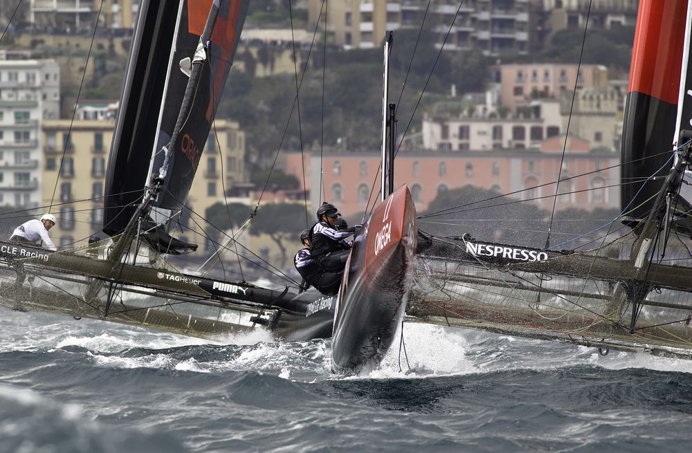 The Naples America's Cup World Series 2013 Day 2 saw a great success of ORACLE TEAM USA SLINGSBY and Energy Team, along with a jarring collision between Emirates Team New Zealand and Luna Rossa Challenge. ... read full story