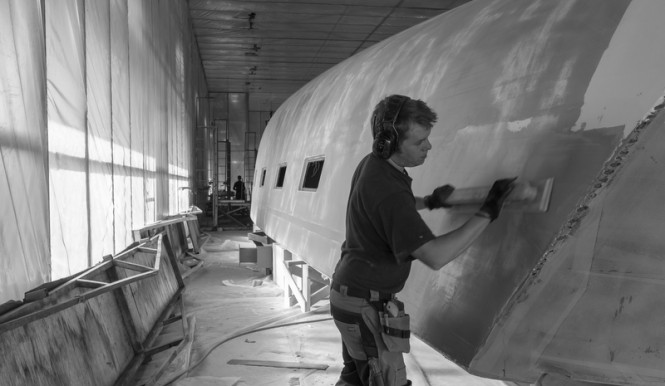 Photos from construction of Nautor’s Swan sailing yacht Swan 115-001 S Hull