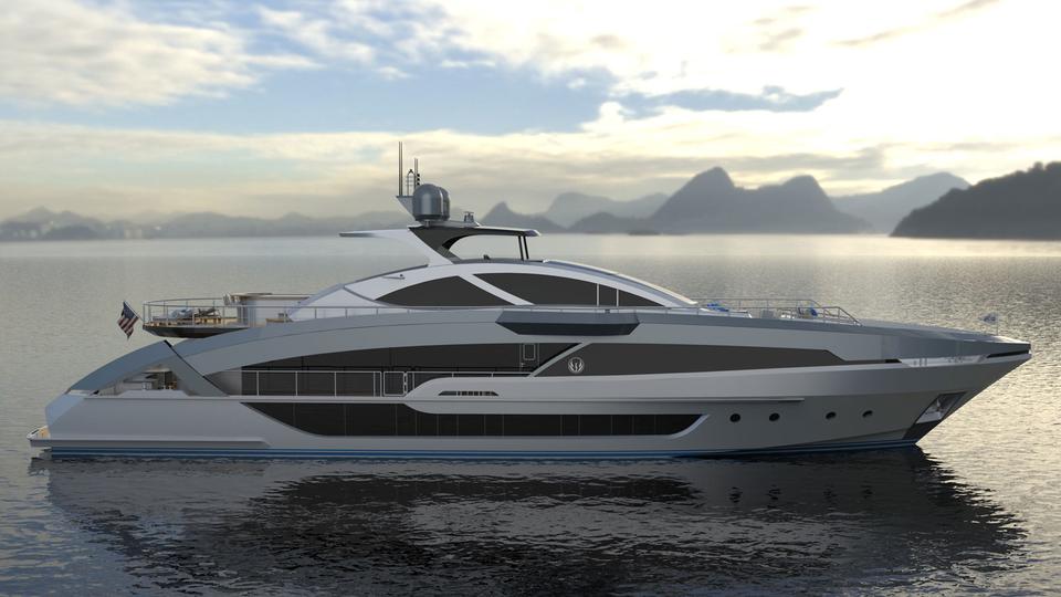 Superyacht Phoenix 130 with design similar to charter yacht OKTO