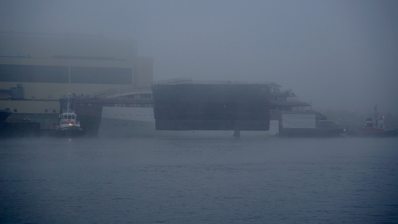 Photos of the impressive 156m (512') motor yacht OMAR (project name) by Lurssen, spotted by DrDuu in her floating dock, which is now open. She is expected to be handed over withing the next year. ... read full story