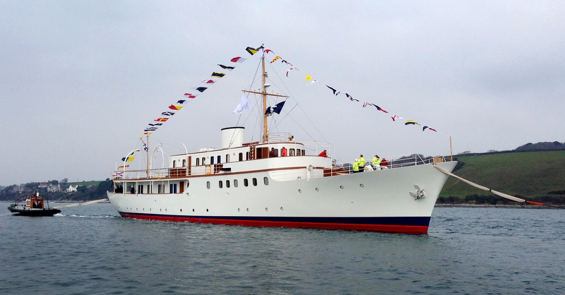 Re-launch of 50m classic motor yacht MALAHNE at Pendennis Shipyard