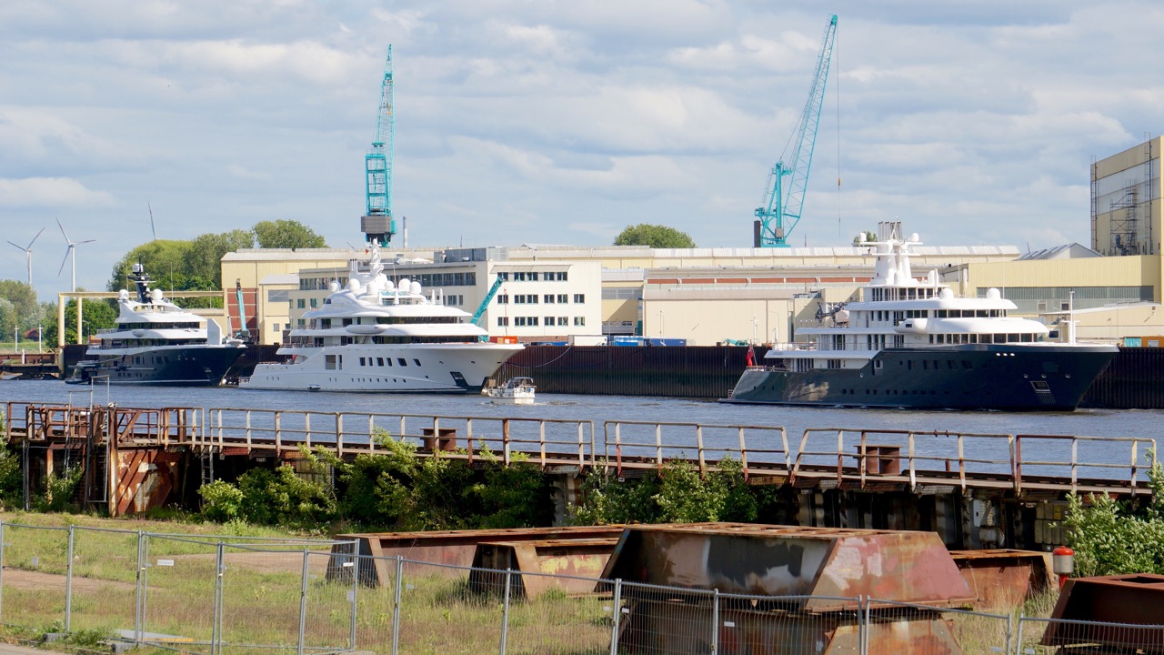 Three luxury vessels by Lurssen have been spotted by yacht photographer 'DrDuu', including the 103m superyacht Quantum Blue, the 90m motor yacht Phoenix 2, as well as the 90m mega yacht ICE - all three moored together at the Lurssen shipyard in Germany. ... read full story