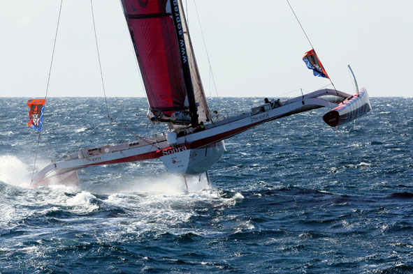 Racing Sailing Yacht SOPRA is a composite multi hull trimaran measuring 21 meters (68,9 ft) in length, with a beam of 18,4 m (60ft) which was designed by Marc Lombard and built and launched in 2002 by MAG and OCEA. ... read full story