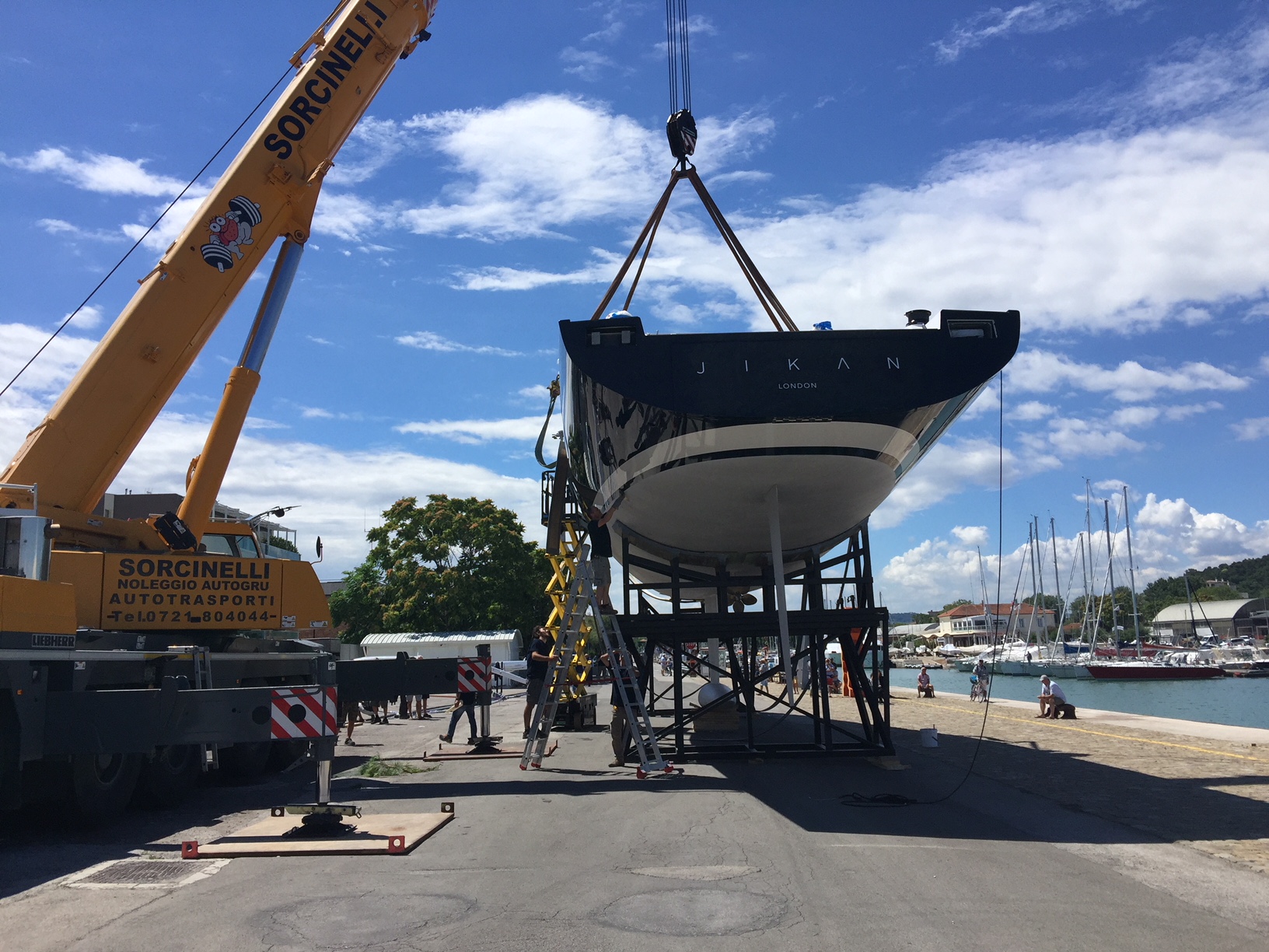 42-Metre Perini Navi sailing yacht E-VOLUTION prepares for completion in Viareggio