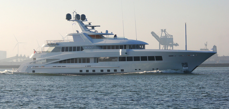 Photos showing the 60,35m Feadship mega yacht ROCK.IT (hull 687), while leaving the New Waterway near Hoek van Holland to start her sea trials in the North Sea. ... read full story