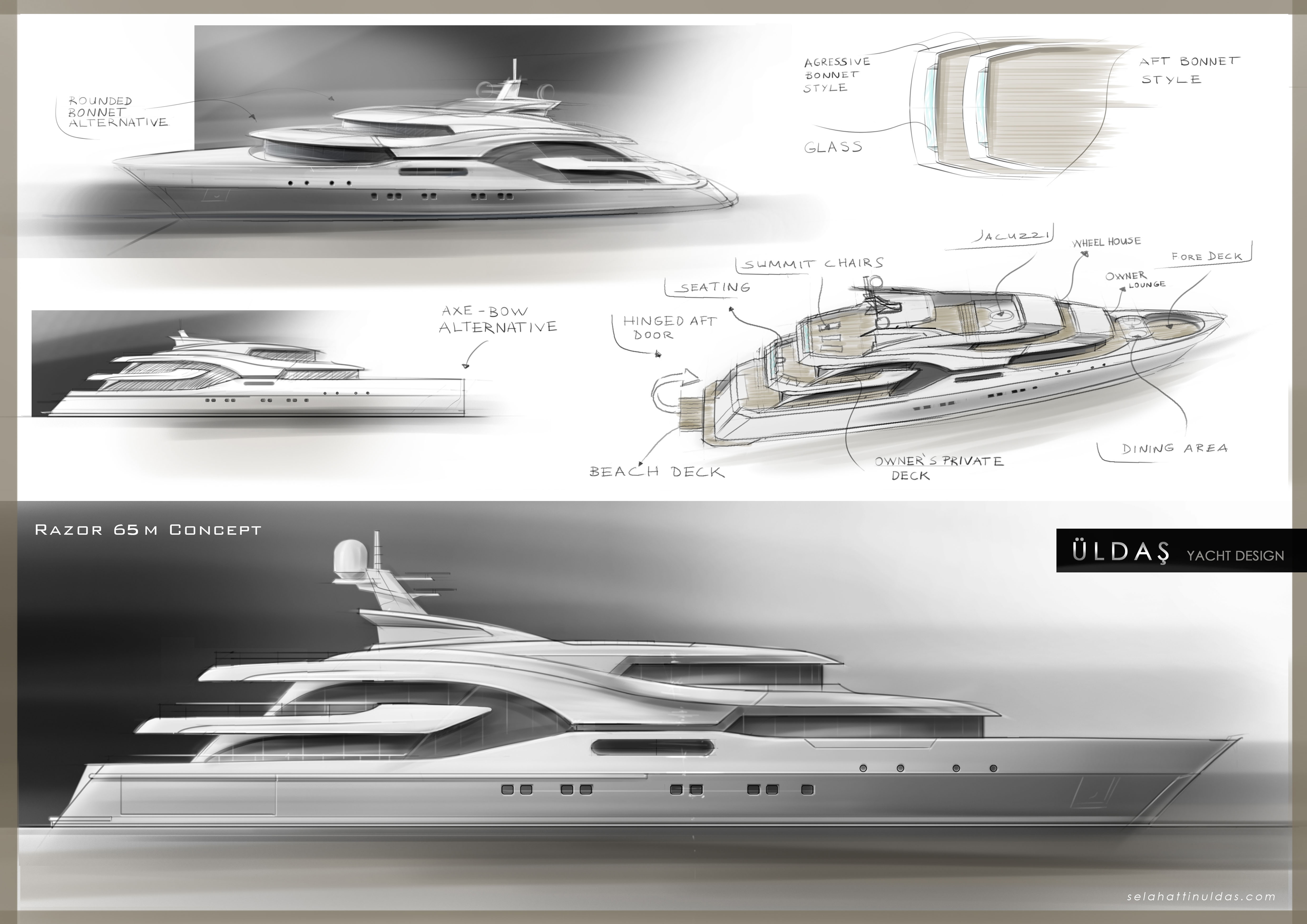 New 65m motor yacht Project RAZOR concept by Uldas Design