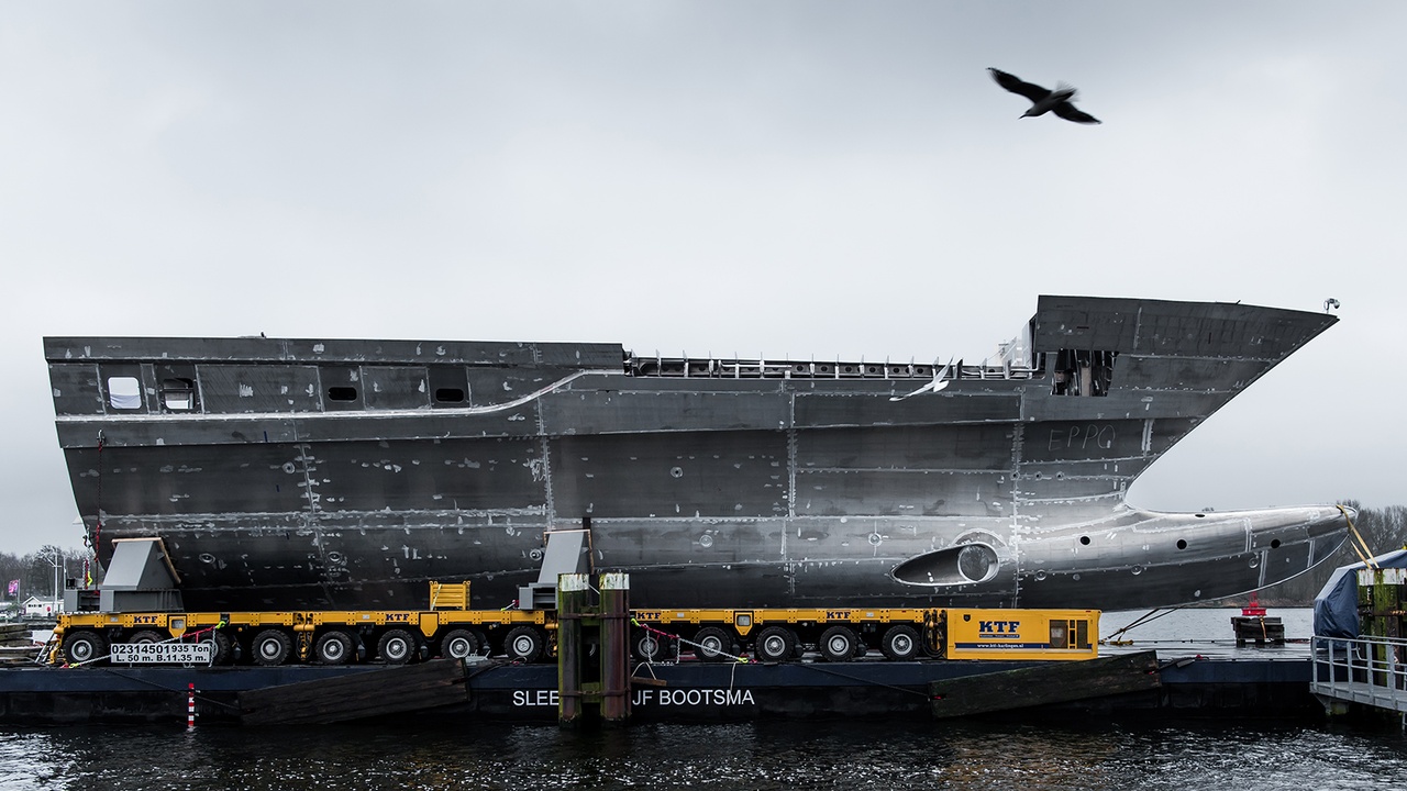 The hull for luxury yacht PROJECT COSMOS (a.k.a. HULL YN 19480), the largest all-aluminium yacht the shipyard has ever produced, has been spotted on her way to the Heesen facilities. ... read full story