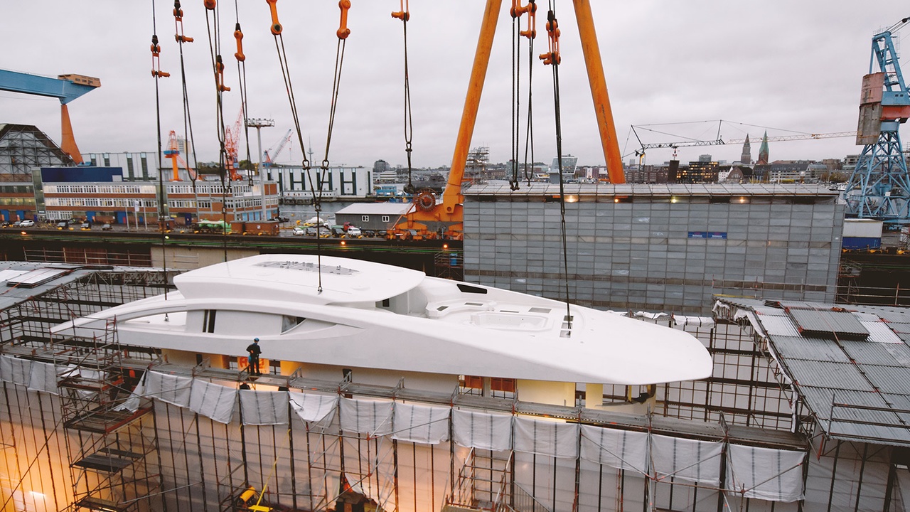 The hull for 77m/252.6ft superyacht PROJECT SHARK has been towed from Kiel to the Nobiskrug facilities in Rendsburg for the next stage of construction. ... read full story