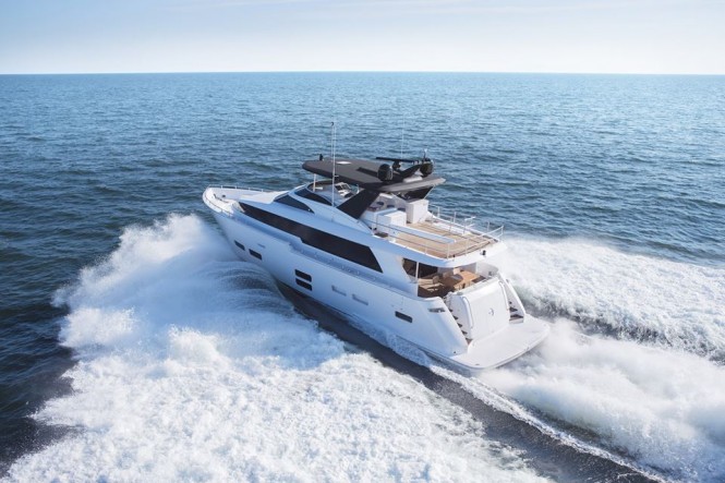 US shipyard, Hatteras Yachts, has unveiled the beautiful exterior and interior images of the Mediterranean-inspired Hatteras 70. Boasting a state-of-the-art fibreglass construction and a vast flybridge sheltered by custom hardtop, luxury yacht Hatteras 70 made her world premiere at last month’s Fort Lauderdale International Boat Show (FLIBS).