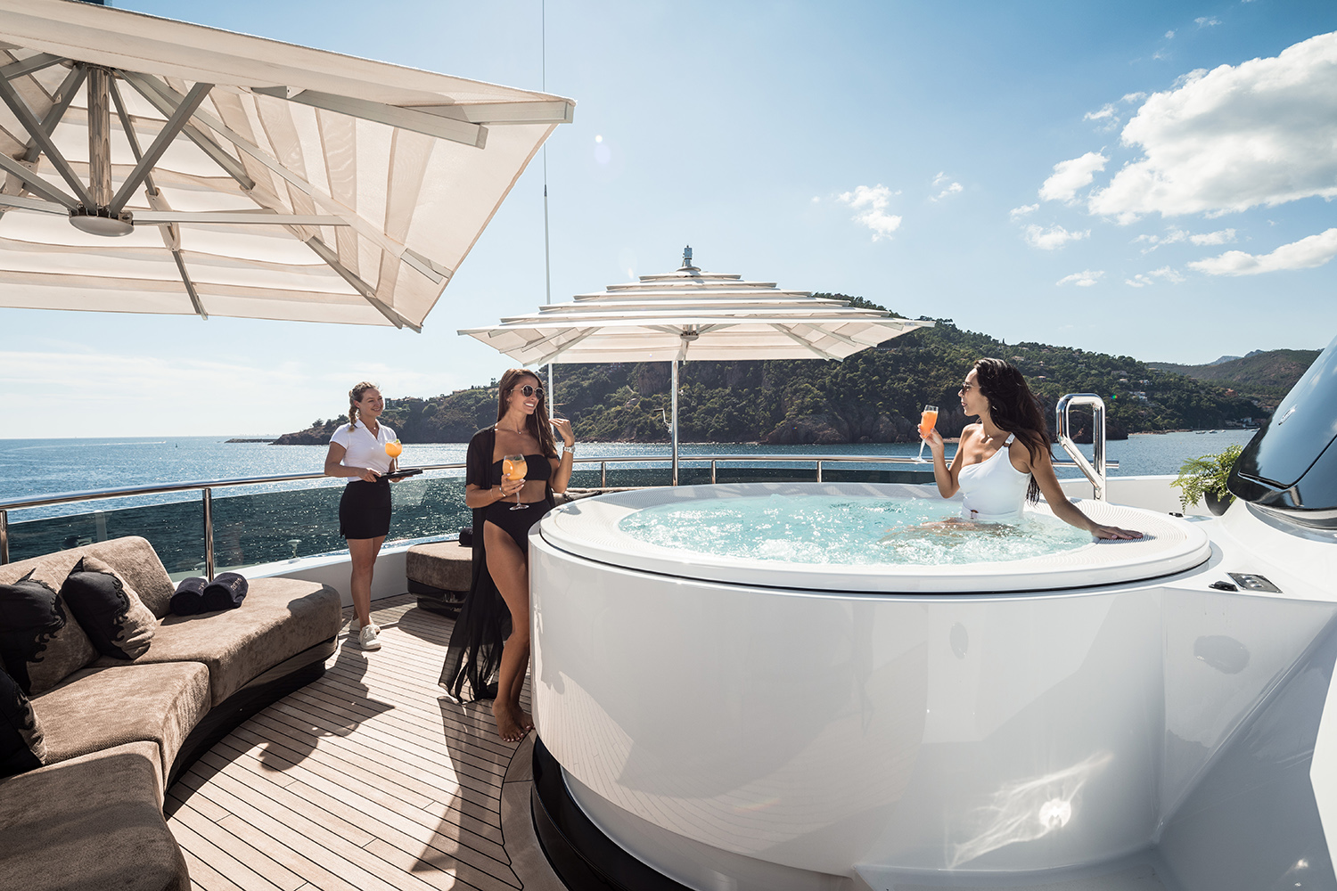This image is featured as part of the article Ten luxury superyachts for charter with amazing sun decks and Jacuzzis.