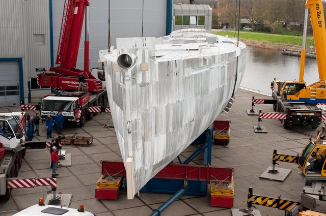 This image is featured as part of the article The 49m Spirit of Tradition Ketch Hull number 388 Turned.