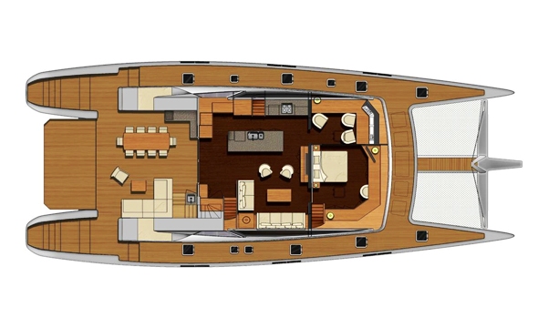 Catamaran Blue Coast 95 will feature a contemporary design with large open spaces and panoramic views. The sailing yacht will offer a great layout for entertaining and relaxation as well as great sailing performances with luxurious fittings and top quality equipments.