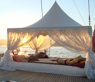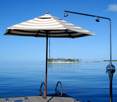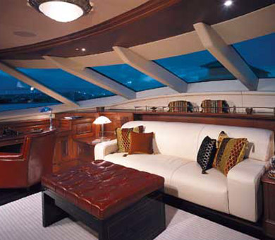 Superyacht Tiara’s decks are large, well flowing and spacious, and there are several areas for charter guests to sunbath, relax and enjoy the cruising experience. The fly bridge area accommodates a large dining table and is fully protected from the sun by an awning. The aft deck (which is large enough for helicopter landing) leads down, with a palatial stairway, to a fold out beach area at the transom. This ‘beach’ creates an ideal place to access the water for a swim, board the tender for a shore excursion, or tryout the various water sports toys. As well as offering extensive and spacious deck and fly bridge areas for outdoor entertaining and activities.