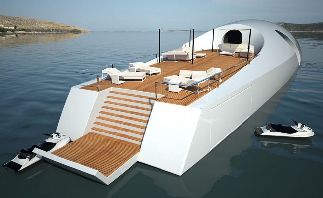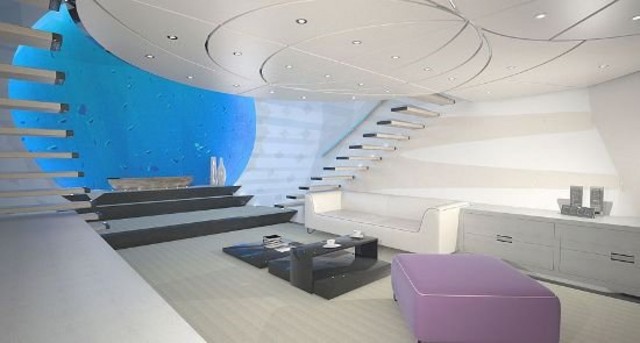 The luxurious U-010 Underwater Yacht concept is an extraordinary vessel able to operate like a Superyacht and a submarine to explore the width and the depths of the ocean in style. With an overall length of 220 feet (67 meters), the U-010 vessel was designed for deep sea exploration combined with comfort and luxury. The yacht can travel on the surface as well as underwater by cleverly passing from diesel to electric propulsion.
