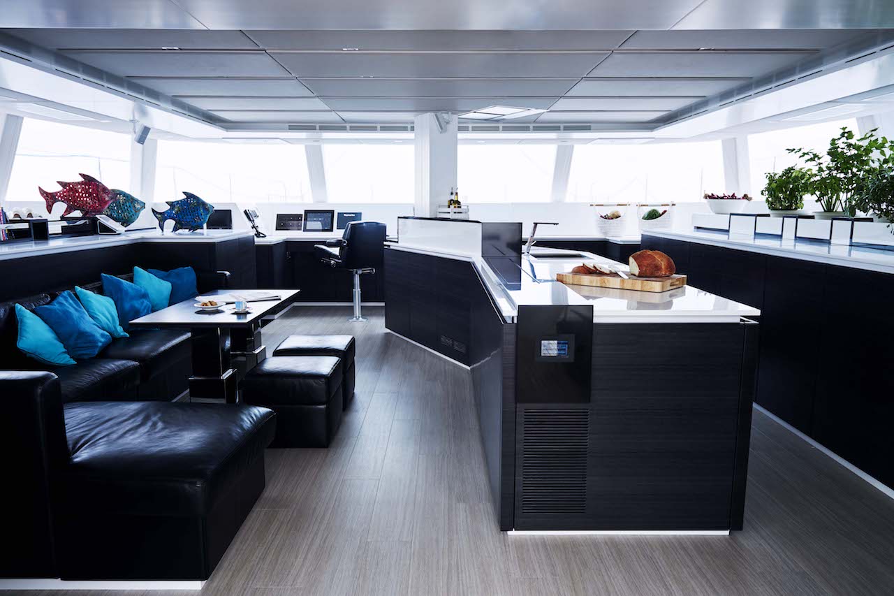 Please contact CharterWorld - the luxury yacht charter specialist - for more on superyacht news item "Luxury catamaran 19th HOLE - Saloon and galley".