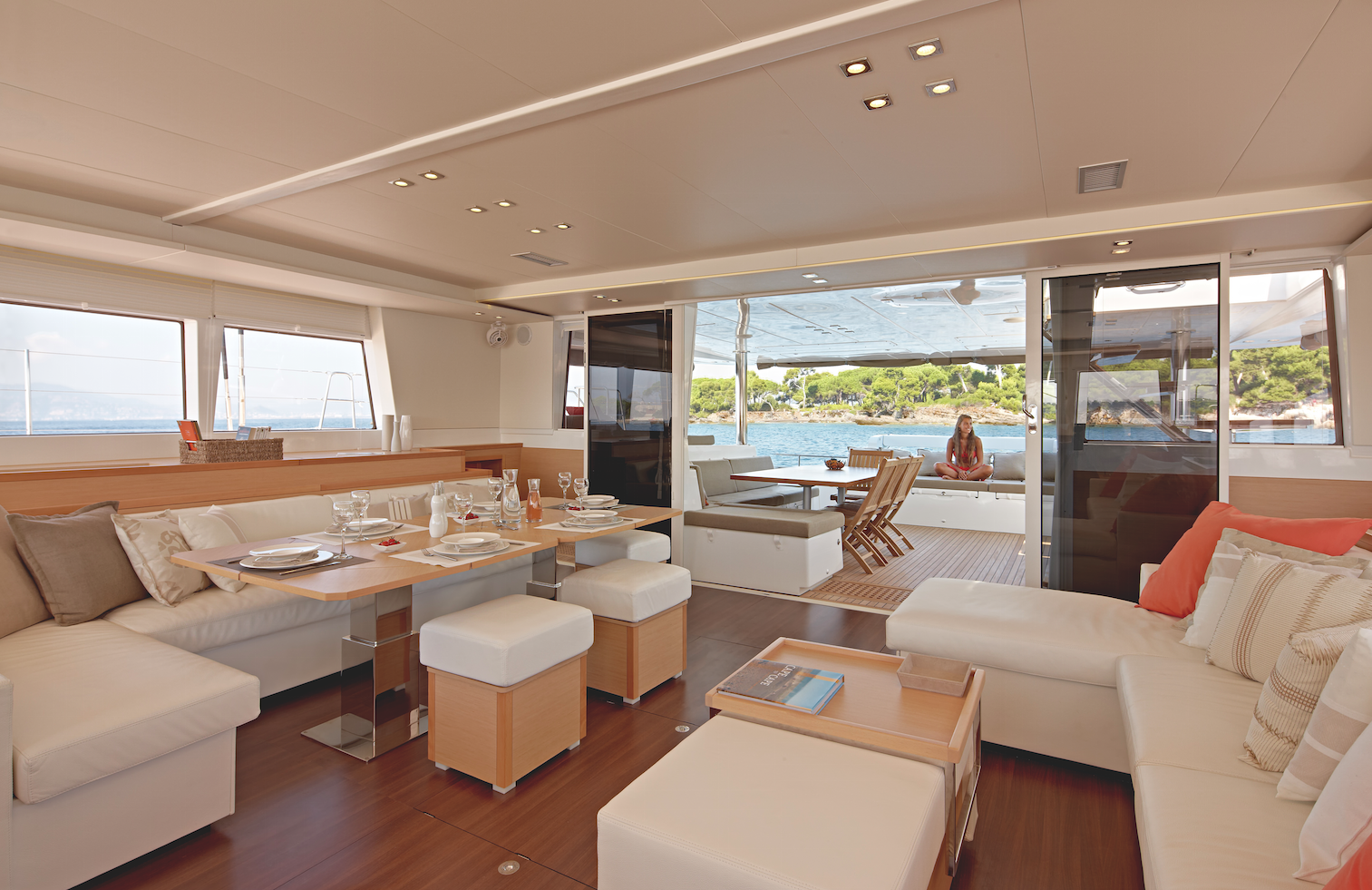 Please contact CharterWorld - the luxury yacht charter specialist - for more on superyacht news item "Luxury catamaran ENIGMA - Salon view aft".