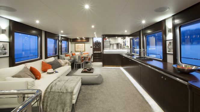 The understated elegance of superyacht ROBBIE BOBBY is ideal for relaxed charters among family and friends looking to celebrate a special occasion or just enjoy a break from the mundane. There is ample seating inside and out to host a gathering, with a wet bar to provide refreshments, and the selection of water toys lets guests explore each destination at their leisure. The accommodation sleeps 10 guests in five en-suite cabins: 1 Master suite, 2 VIP staterooms and 2 double cabins, so that everyone plenty of space.