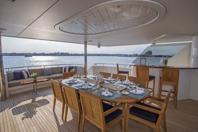 The elegant art deco atmosphere aboard 49m/162ft superyacht REMEMBER WHEN is captivating, and a wonderful place to host an evening soiree. Dine together on a delectable multi-course meal prepared by your expert on board chef while the piano provides live music in the salon. There’s plenty of modern technology integrated into the surroundings, and you can have your own playlist as the backdrop by using the iPod docks.