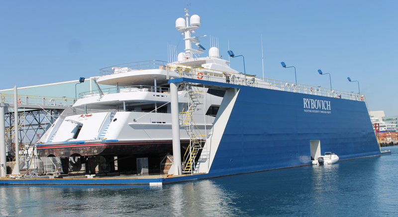 This image is featured as part of the article Trinity charter yacht MI SUENO – first superyacht hauled out by Rybovich on floating dry dock.