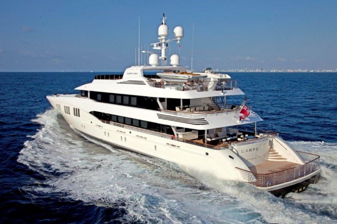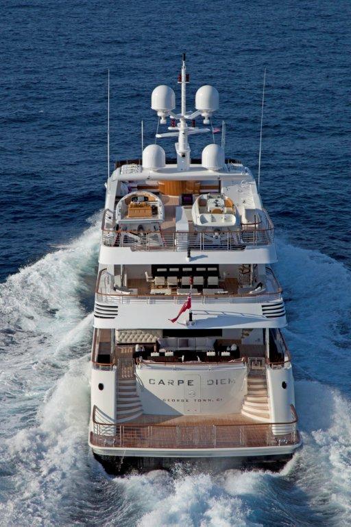 Motoryacht Carpe Diem accommodates an owner’s party of twelve (12) in six (6) staterooms and twelve (12) crew in six (6) cabins. She is also available for luxury yacht charter.