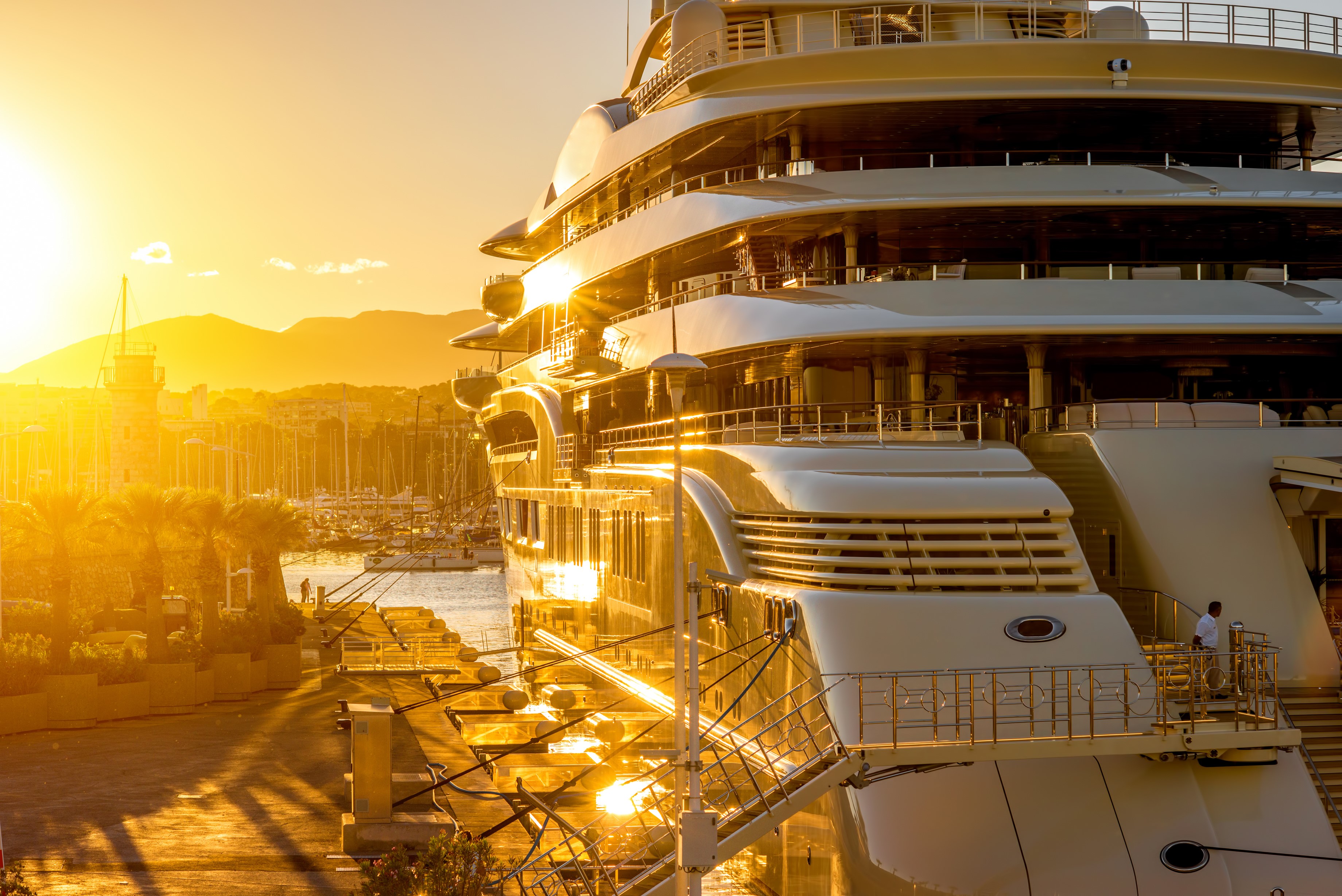 Please contact CharterWorld - the luxury yacht charter specialist - for more on superyacht news item "Big luxury yacht at the harbor on the sunset in Antibes city in France".