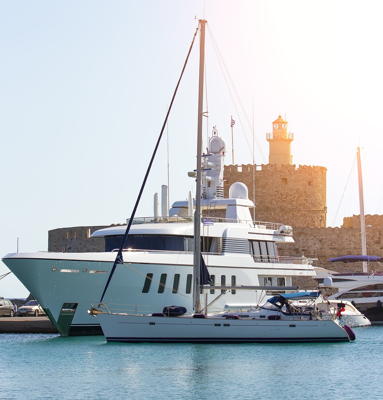 Please contact CharterWorld - the luxury yacht charter specialist - for more on superyacht news item "large white modern motor superyacht in the port city of Rhodes Greece".