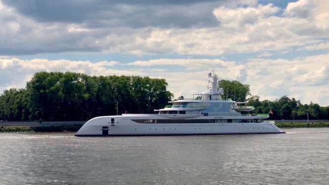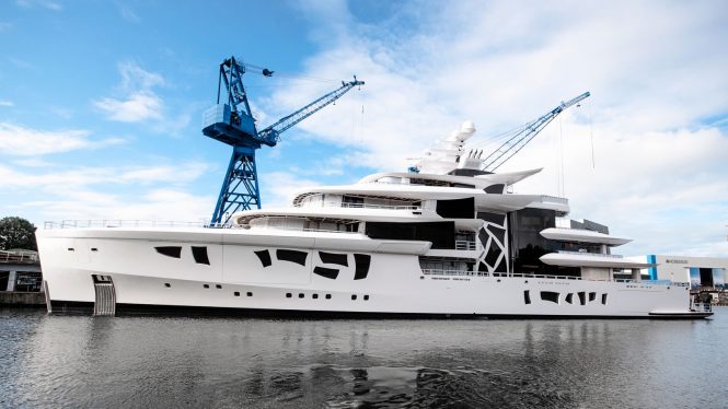 77.3m/253.5ft superyacht SYZYGY 818 (ex.PROJECT 818) from Feadship was launched in June 2019 and therefore one of the newest yachts on this list. The exterior styling comes from designer Jarkko Jämsén while the interiors are the work of Sinot Yacht Architecture & Design.