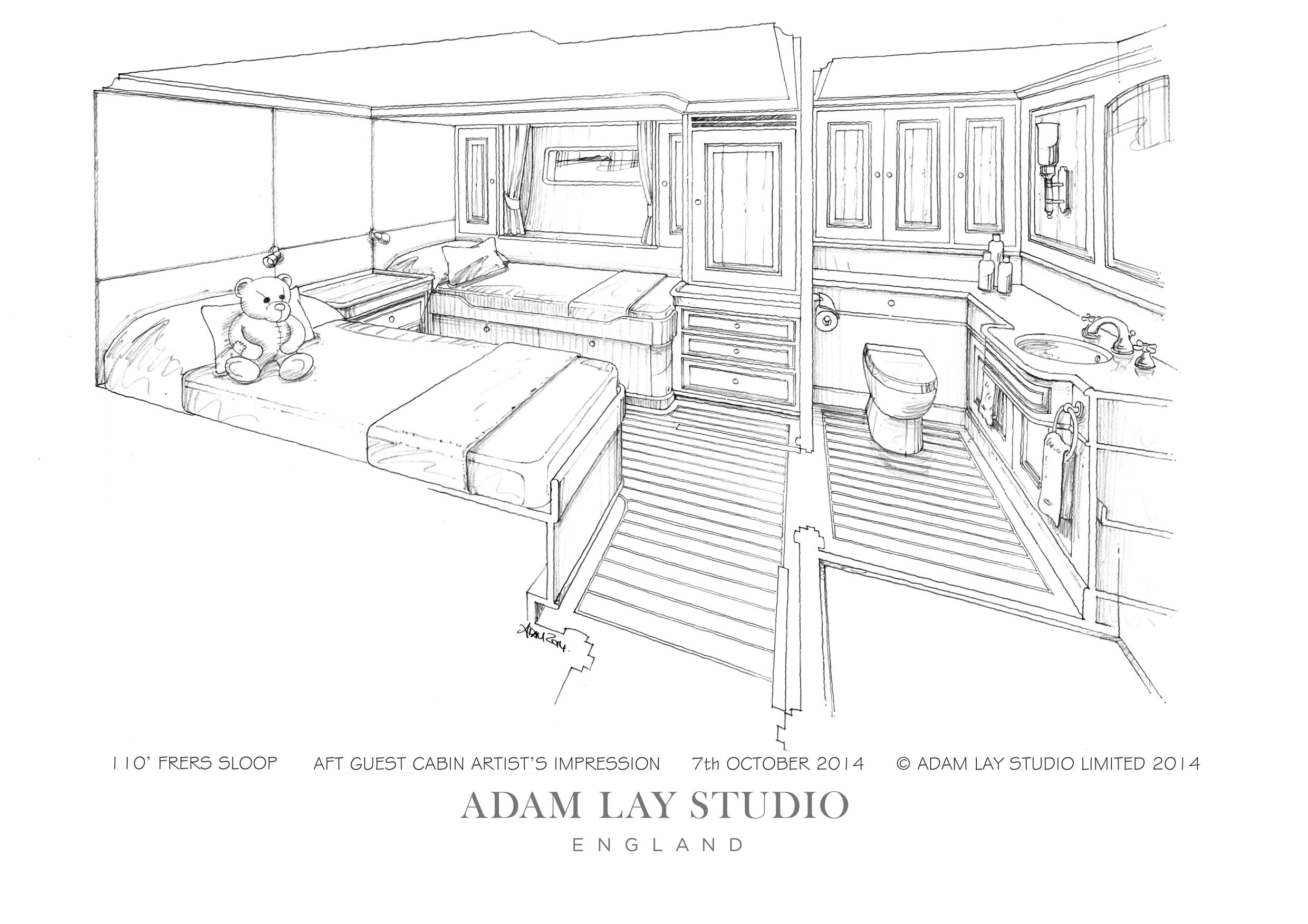 110′ Frers Super Yacht Hull 1012 – Aft Guest Cabin