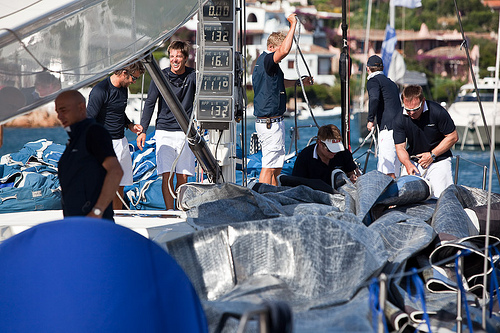 Tomorrow’s forecast of up to 28 knots from the south-east will make for another challenging and exciting race around the islands of the Costa Smeralda. This evening, the all the race crews gathered round the Piazza Azzurra outside the host Yacht Club Costa Smeralda to share their epic stories over some cocktails.